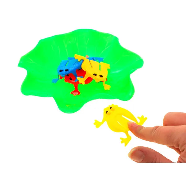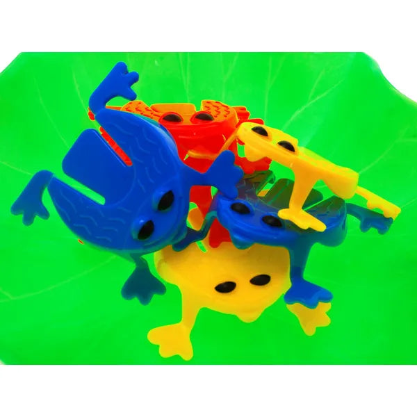 A készletben 6 rugós béka (2 sárga, 2 narancs, 2 kék) és egy zöld levél alap található. A békák farkát lenyomva kilövik magukat, a cél pedig a lehető legpontosabb vagy leghosszabb ugrás – attól függően, melyik játékmódot választjátok.