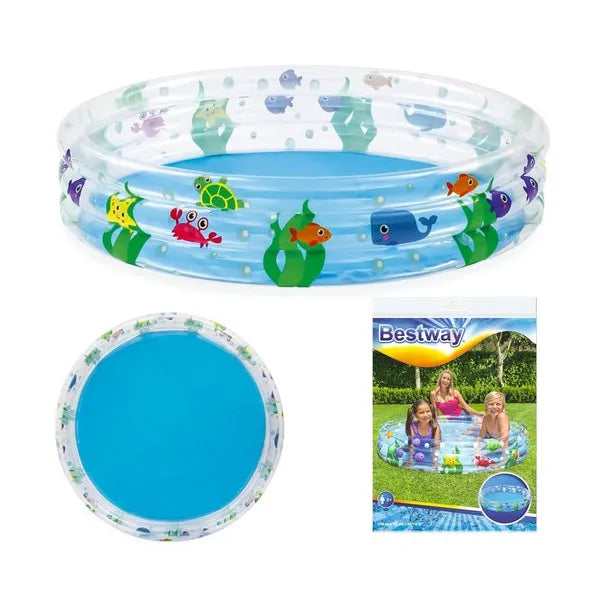 A Bestway felfújható gyerekmedence ideális nyári frissítő élményt nyújt a legkisebbeknek a kertben vagy akár beltéren. A három külön felfújható, színes gyűrű stabil szerkezetet és puha oldalfalat biztosít, így a 2 évnél idősebb gyermekek biztonságosan pancsolhatnak vagy játszhatnak benne. Tartós, 0,8 kg súlyú PVC-vinyl anyagból készült, 101 literes vízkapacitással, valamint három visszacsapó szeleppel, amelyek megakadályozzák a levegő szivárgását.