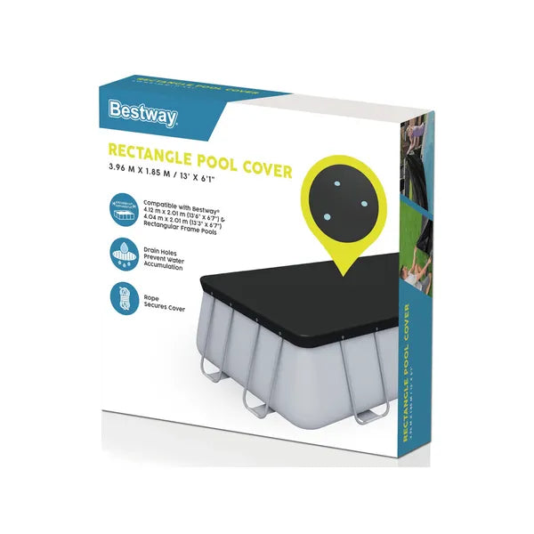 A Bestway PVC medencetakaró megbízható védelmet nyújt a 404×201 cm-es, fémvázas téglalap alakú medencék számára. A strapabíró PVC anyag távol tartja a leveleket, rovarokat és a könnyű esőt, miközben csökkenti a hőveszteséget és biztonságot ad a gyermekeknek.