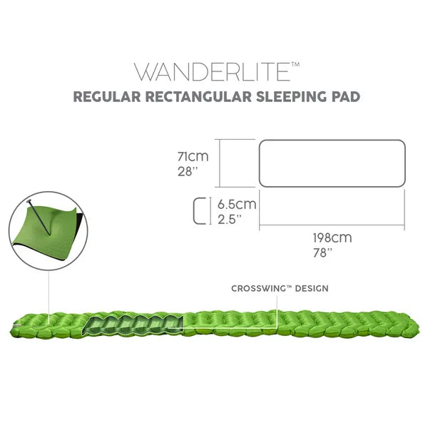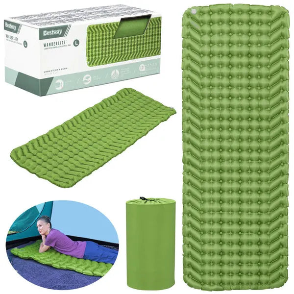 Merülj el a nyári éjszakák csendjében úgy, hogy közben nem kell lemondanod a kényelemről! A Bestway WanderLite Large felfújható turistamatrac 6,5 cm-es vastagságával és ergonomikus CrossWing™ légcelláival egyenletes alátámasztást ad, így nem gurulsz le róla a sátorban vagy a strandon.