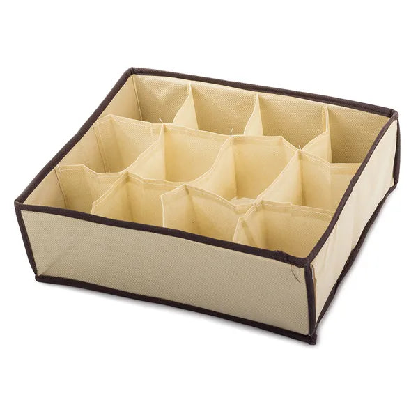 Bézs fehérnemű- és zokniszervező, 12 rekesszel, 30×25×10 cm