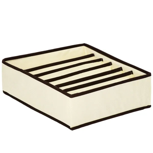 Tegye átláthatóvá fiókjait ezzel a praktikus, 7 rekeszes fiókrendezővel! A strapabíró, bézs színű, nemszőtt textilből készült doboz merevített oldalfalai megakadályozzák az összecsuklást, így tartalma mindig rendezett marad.