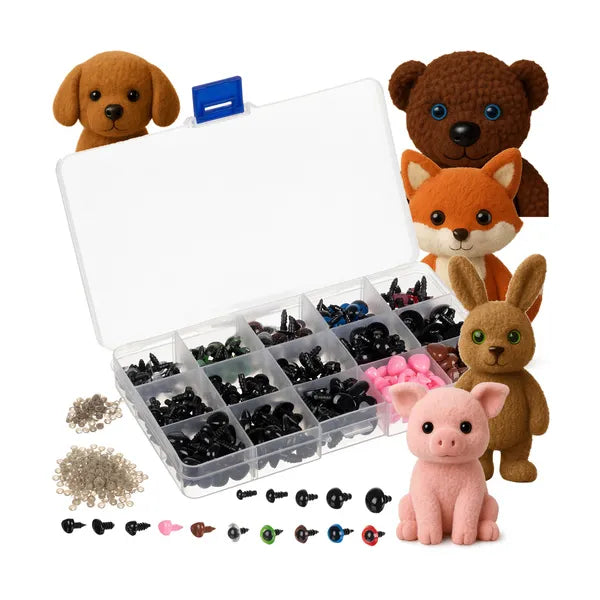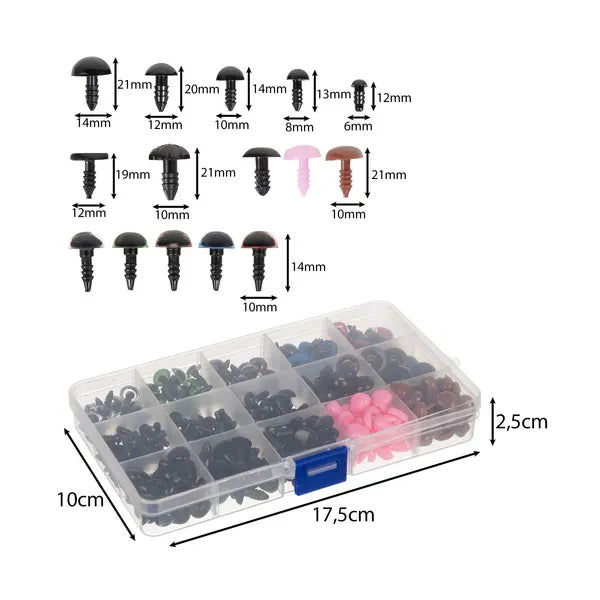 Biztonsági szem és orr készlet plüssfigurákhoz, 560 db, rendező dobozzal