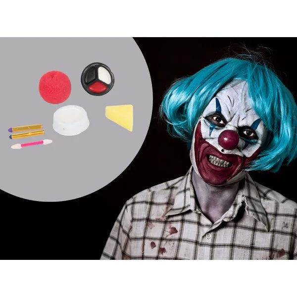 Készítsd el pillanatok alatt a klasszikus, mégis hátborzongató bohócsminket ezzel a komplett készlettel! A három alap arcfesték (piros, fehér, fekete) krémes állagú, erősen pigmentált és bőrbarát, így a színek élénkek maradnak egész este.