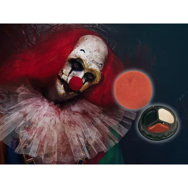 Bohóc smink készlet piros orral – 3 színű festék, szivacs, ceruza