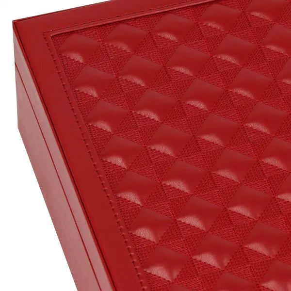 Legyen minden ékszerednek saját helye ebben a prémium, bordó ékszerdobozban, amely eko bőrből, MDF-ből és puha zamszból készült.