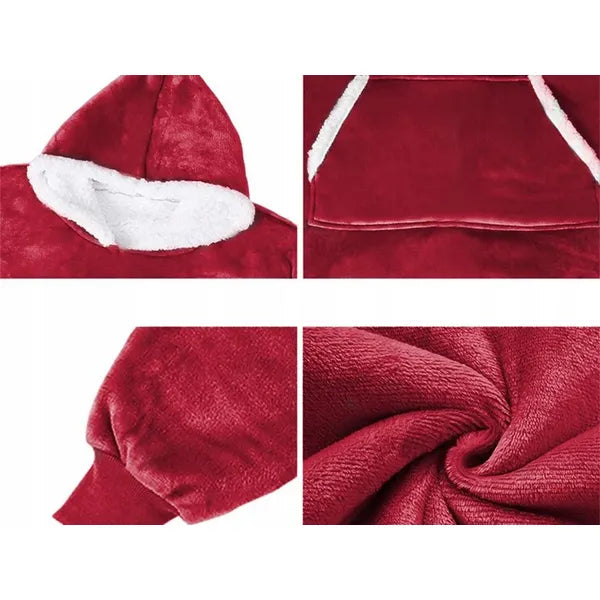Süllyedj bele a bordó, oversize kapucnis takaró-pulóverbe, amely a plüss takaró ölelését ötvözi egy laza pulóver szabadságával. Univerzális XXL mérete nőknek, férfiaknak és gyerekeknek is kényelmes, így a család minden tagja élvezheti a meleget.