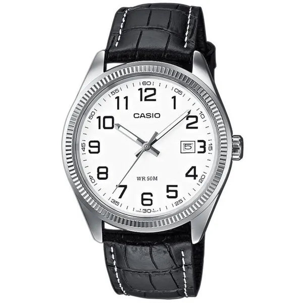 Casio MTP-1302PL-7B férfi karóra, bőr szíj, fehér számlap, WR50