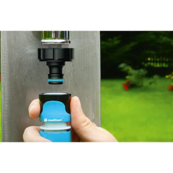 Az ergonomikus kialakítású Cellfast Ergo belső menetes tömlőcsatlakozó néhány mozdulattal felcsavarható a vízcsapra, így gyorsan összeállíthatja kertöntöző vagy tisztítórendszerét.