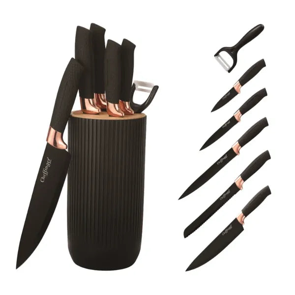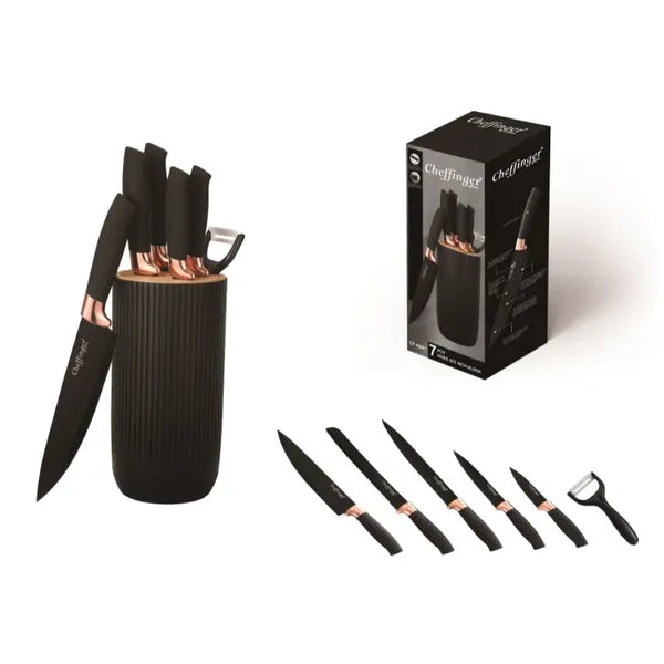 Chefinger 7 darabos fekete–rózsaarany tapadásmentes késkészlet blokkal
