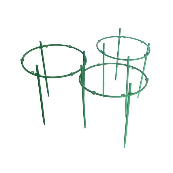 A háromrészes, zöld műanyag gyűrűs növénytámasz megbízható segítség a cserepes és szabadföldi virágok, zöldségek és futónövények függőleges neveléséhez. A 19 cm átmérőjű karikák körülölelik a szárat, megakadályozzák a megdőlést és a virágok súlya miatti letöredezést.