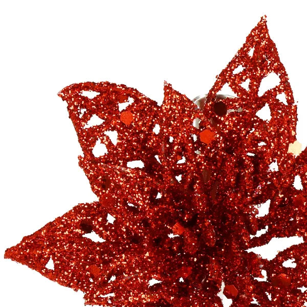 Csillámos piros mikulásvirág karácsonyi dísz 11×11 cm műanyag