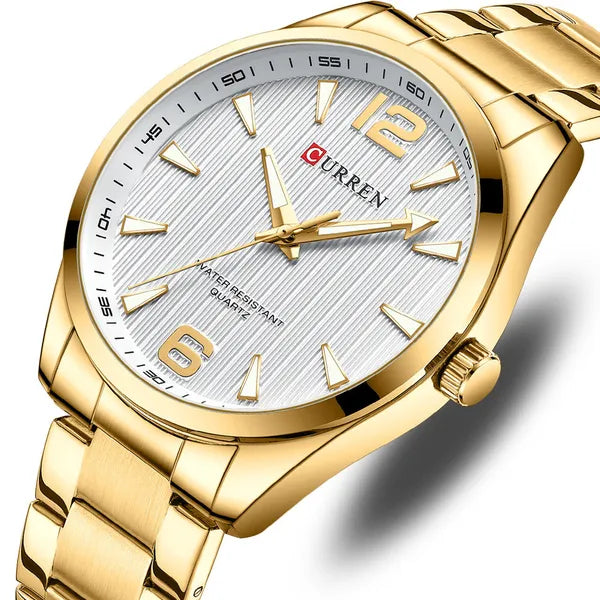 Curren 8434 férfi karóra – arany fém szíj, ezüst számlap, kvarc