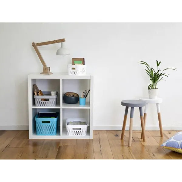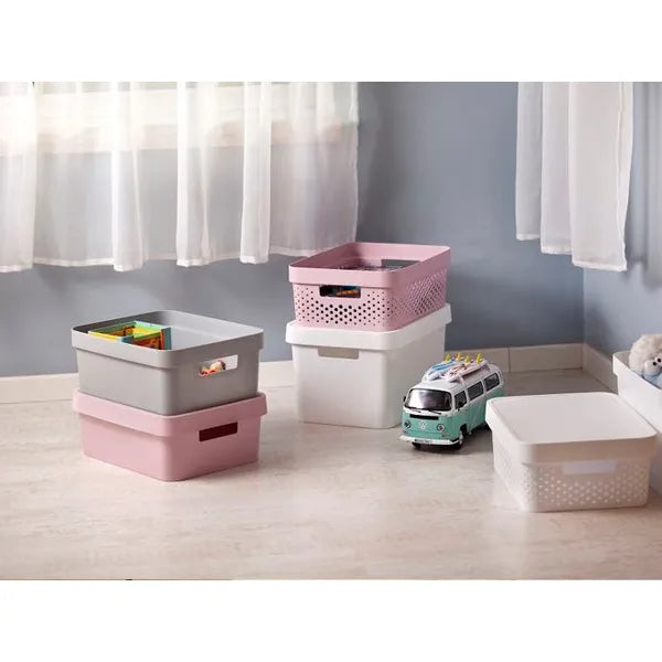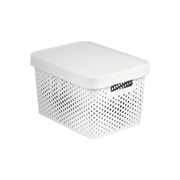 A Curver Infinity 17 l-es, fehér lyukacsos tárolódoboz fedéllel praktikus megoldás otthoni rendszerezéshez. Lyukacsos falai biztosítják a szellőzést, míg a letisztult, semleges szín bármely helyiségbe illik – nappaliba, fürdőszobába vagy gyerekszobába.