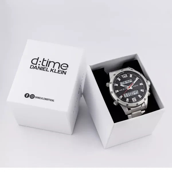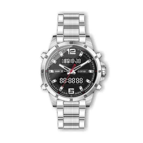 A Daniel Klein DK12408-2 férfi karóra egyszerre analóg és digitális kijelzőt kínál, így bármilyen fényviszony mellett könnyen leolvasható az idő. A 47 × 53 × 14 mm-es, ezüstszínű fémtok és a masszív, 22 mm széles rozsdamentes acél szíj elegáns megjelenést és kiemelkedő tartósságot biztosít.