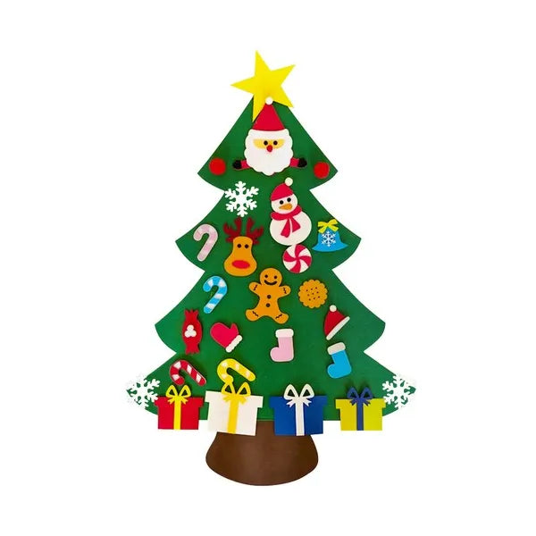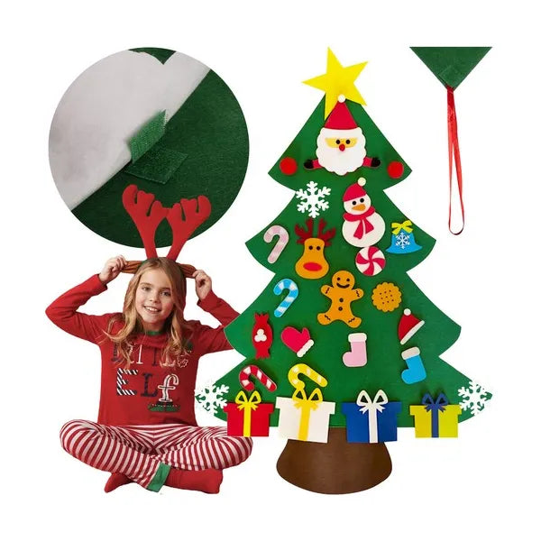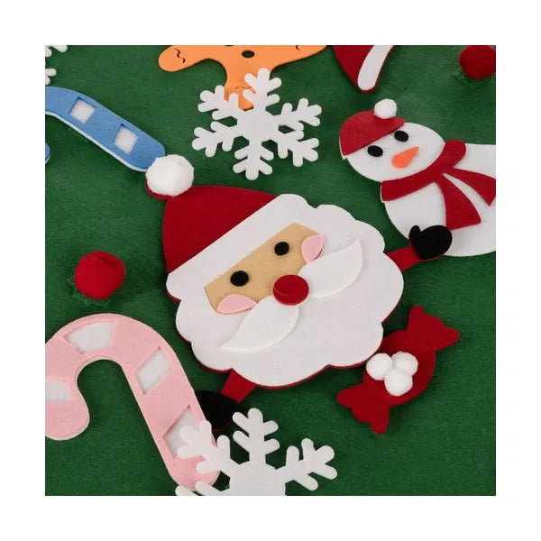 Az újrahasználható, 90 cm magas DIY filc karácsonyfa egyszerre ünnepi dekoráció és kreatív játék a család minden tagjának. A puha, színtartó filcből készült fenyő 26 darab nagyméretű, tépőzáras díszt tartalmaz, így a gyerekek biztonságosan, tű és törékeny gömbök nélkül rendezhetik át a karácsonyfa megjelenését újra és újra.