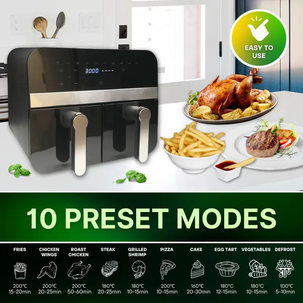 Dupla kosaras 9 l-es digitális forrólevegős sütő 2400 W, fekete