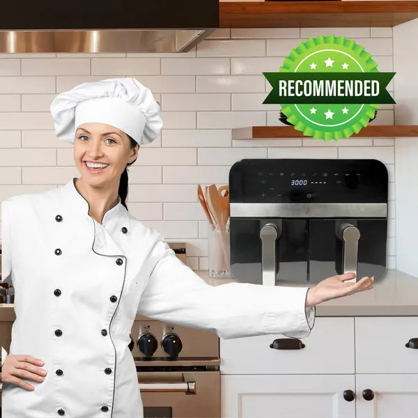 A dupla kosaras, 9 literes digitális forrólevegős sütő ideális választás, ha gyorsan, egészségesen és rendetlenség nélkül szeretnél családi adagokat készíteni. A 2400 W-os teljesítmény és a Fry Force 360° forrólevegő-keringtetés akár 80%-kal kevesebb olajat igényel, mégis aranybarna, ropogós eredményt biztosít.