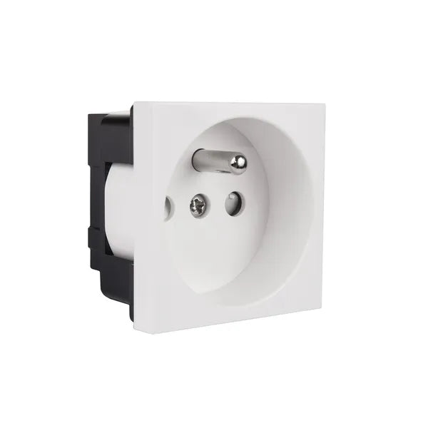 A Maclean MCE718W E típusú, 250 V/16 A névleges feszültségű és áramerősségű, süllyesztett elektromos aljzat elegáns, fehér kivitelben. A modul fél slotot foglal el, így kompatibilis a gyártó modern, üveg előlapos kereteivel, amelyekkel letisztult, minimalista megjelenést biztosít bármely helyiségben.