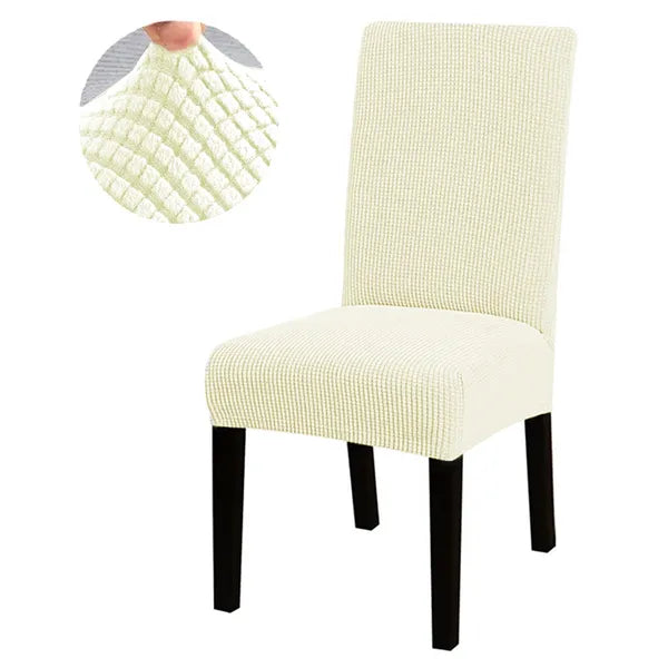 Varázsold újjá étkeződ hangulatát ezzel az univerzális, ecru színű székhuzattal, amely bársonyos, velúrhatású felületével eleganciát sugároz, miközben megóvja székeid kárpitját.