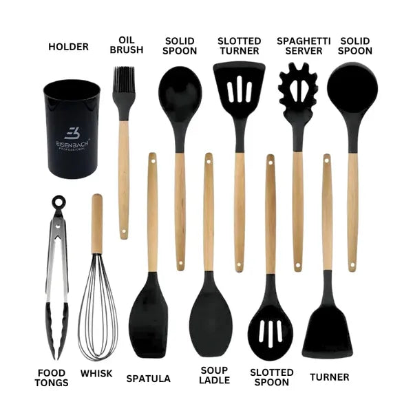 Eisenbach 12 részes szilikon-fa konyhai eszközkészlet, 190 °C hőálló