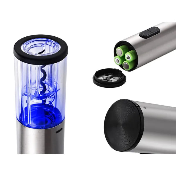 Elektromos boros dugóhúzó LED fénnyel, fóliavágóval, elemes
