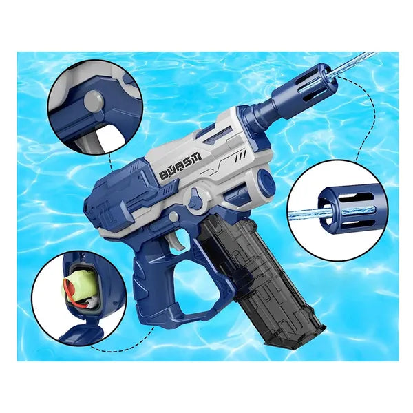Dobd fel a forró napokat az elektromos vízipisztollyal, amely akár 9 m távolságra is eljuttatja a vízsugarat, így Te leszel a kert-, tengerpart- vagy medenceparti csaták bajnoka.