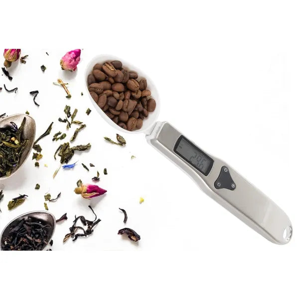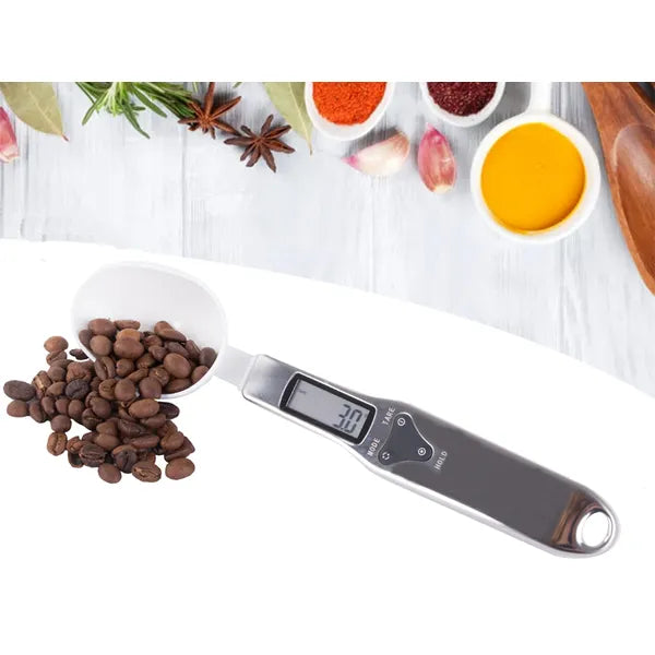 A beépített LCD kijelző 0,1 g lépésközzel, maximum 500 g-ig mutatja az eredményt, a TARE funkciónak köszönhetően pedig a kanál tömege egy gombnyomással lenullázható.