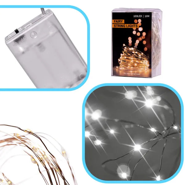 Hideg fehér fényű, 50 LED-es, 5 m hosszú drótfüzér, amely elemes működésének köszönhetően teljes szabadságot ad a dekorálásban. A hajlékony, szinte láthatatlan rézdrót könnyedén formálható, így bármilyen felületen vagy tárgyban elrejthető, hogy csak a szikrázó pontfények maradjanak láthatók.
