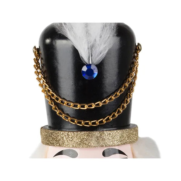 A figura katonai egyenruháját élénk színek, finom aranyszínű díszítések és aprólékosan megmunkált rátétek teszik különlegessé. A hátul található kart a hagyományos diótörő-mechanika ihlette, így nemcsak dekoráció, hanem interaktív élmény is.
