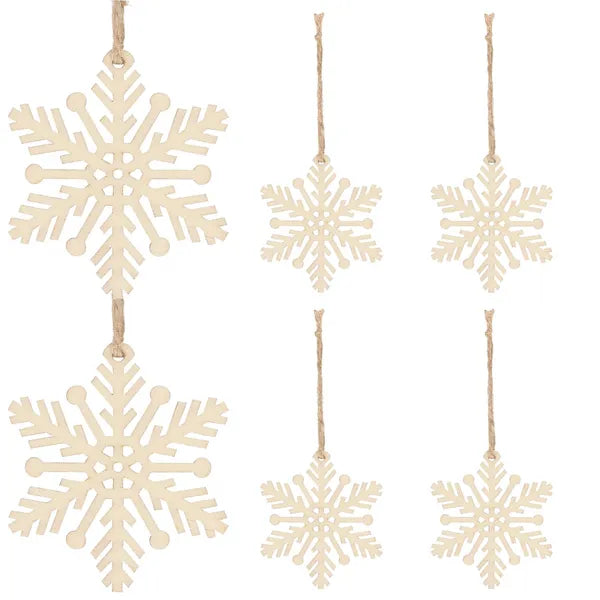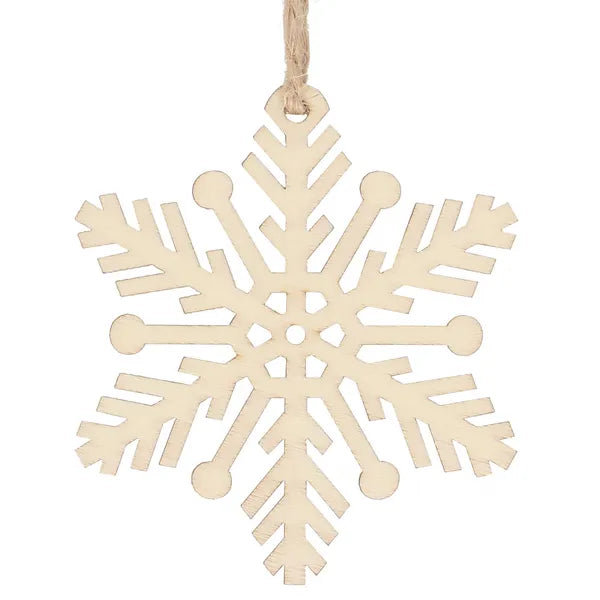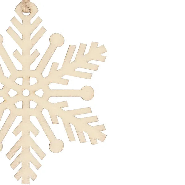 Adj természetes, skandináv hangulatot karácsonyfádnak vagy ajándékcsomagjaidnak ezzel a 6 darabos, natúr fa hópehely dísz szettel. A 7 cm magas, 2,5 mm vastag, nyers fából készült dekorációk tartósak és nem törnek, így évről évre újra felhasználhatók.