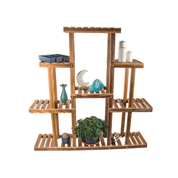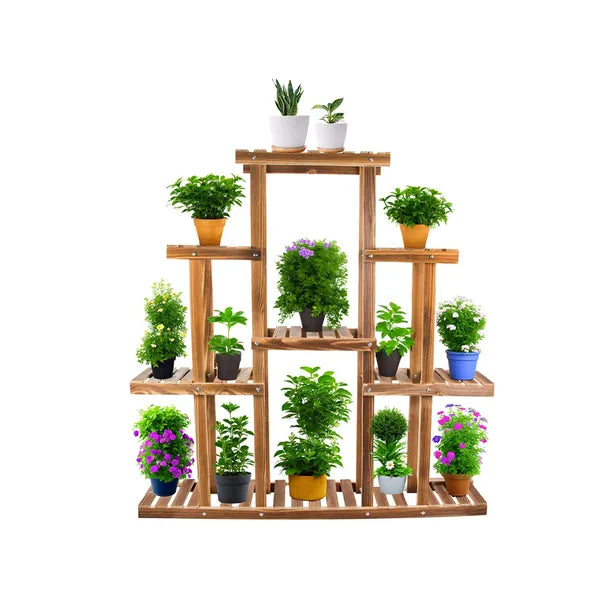 Belehelj természetes melegséget otthonodba vagy teraszodra ezzel az 5 szintes, barna fa virágtartó állvánnyal, amely akár könyvespolcként is megállja a helyét. A 120,5 cm magas és 119 cm széles állvány 13 virágcserépnek biztosít stabil helyet, miközben keskeny, 25,5 cm-es mélységének köszönhetően kis alapterületen is elfér.