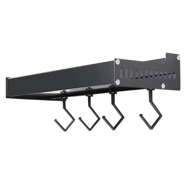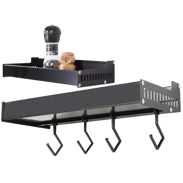 Fali alumínium fűszertartó polc 30 cm, fekete, 4 akasztóval