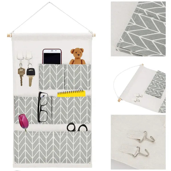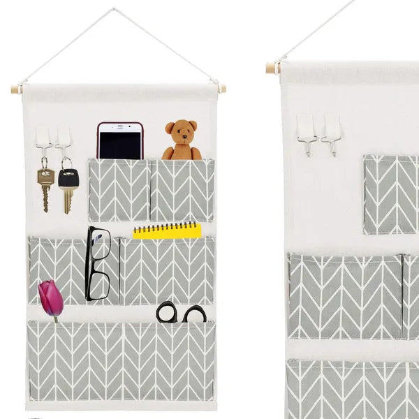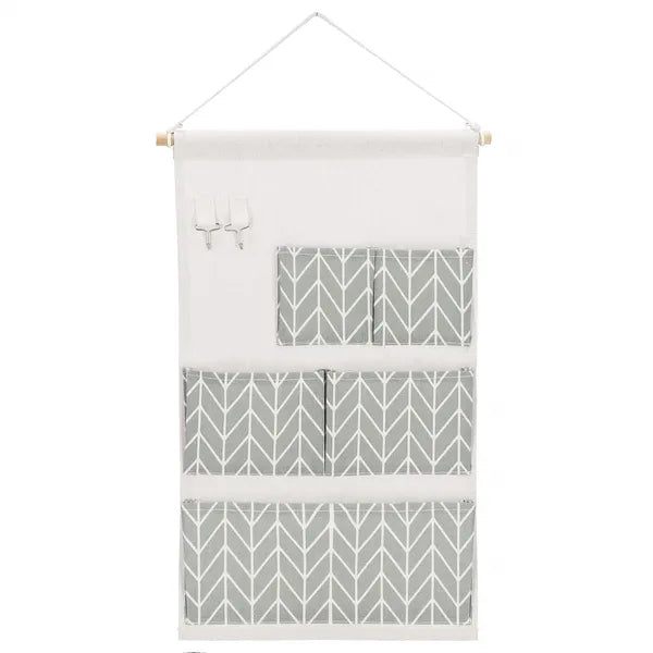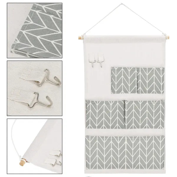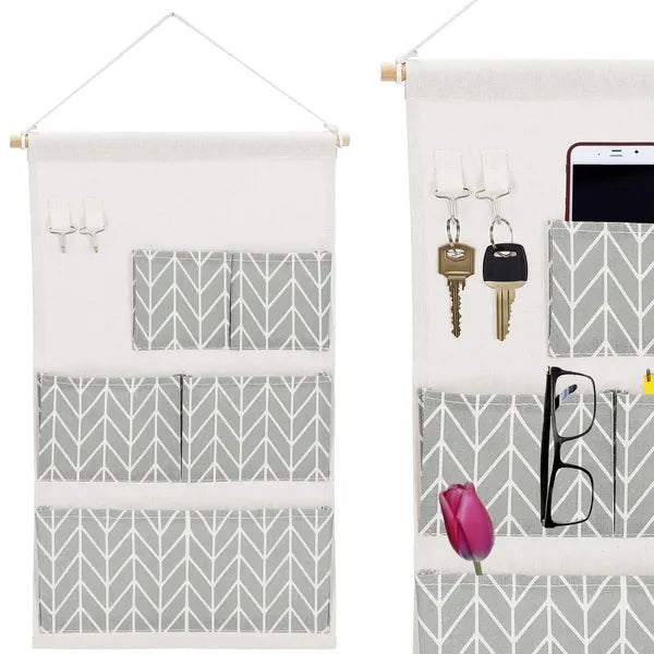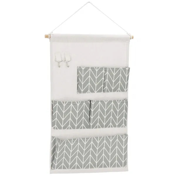 Fali zsebes rendező, 5 zseb, 2 akasztó, szürke, poliészter/pamut