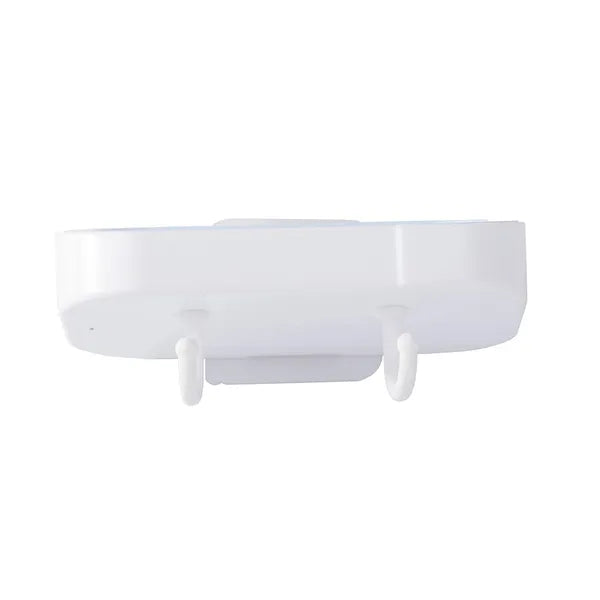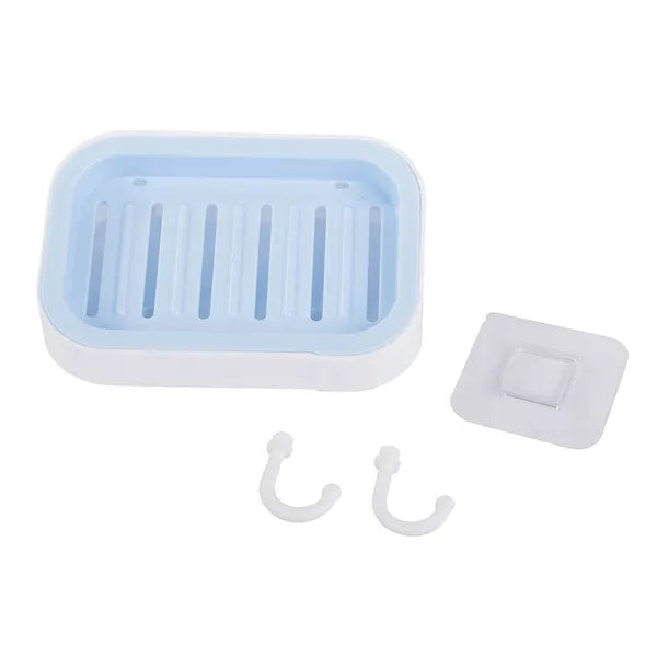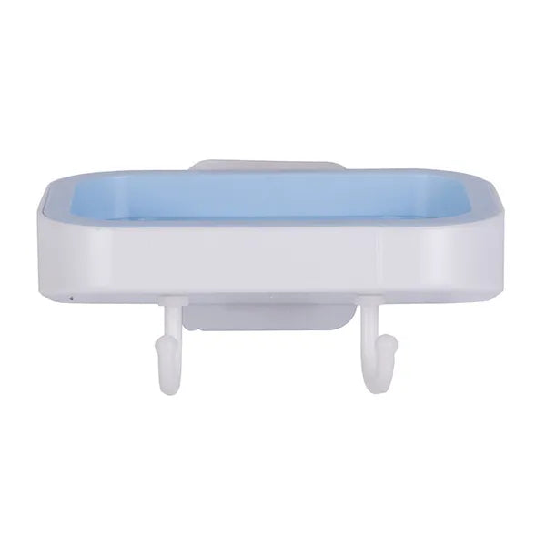 Erős, rozsdamentes acélból készült falra szerelhető szappantartó, amely praktikus megoldást kínál a fürdőszobai rend fenntartására. A két integrált akasztó lehetővé teszi szivacsok, törlőkendők vagy borotvák higiénikus és helytakarékos tárolását.