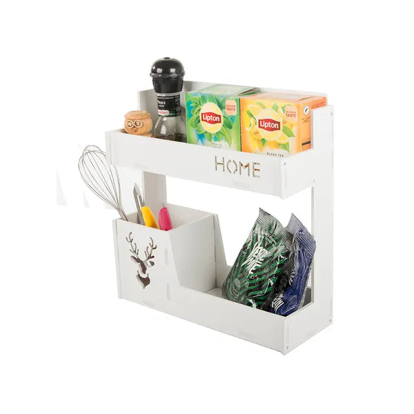 Az öntapadós függő rendező polc rapid megoldást kínál a konyha-, fürdő- vagy akár íróasztal feletti terület rendszerezésére. Két tágas rekeszében elférnek fűszerek, kozmetikumok, jegyzetfüzetek, így a munkalap és a mosdókagyló környéke végre szabadon marad.