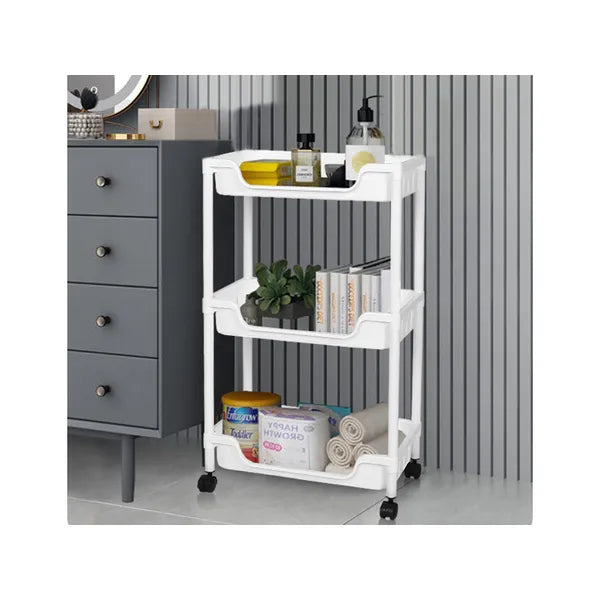 Sokoldalú, hárompolcos guruló tároló, amely tökéletes megoldás a szűk helyek rendszerezéséhez a konyhában, fürdőszobában, irodában vagy nappaliban. A simán gördülő kerekekkel könnyedén oda húzhatja, ahol éppen szükség van rá, a két oldalsó akasztó pedig helyet ad konyharuháknak, szatyroknak vagy tisztálkodó eszközöknek.