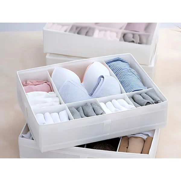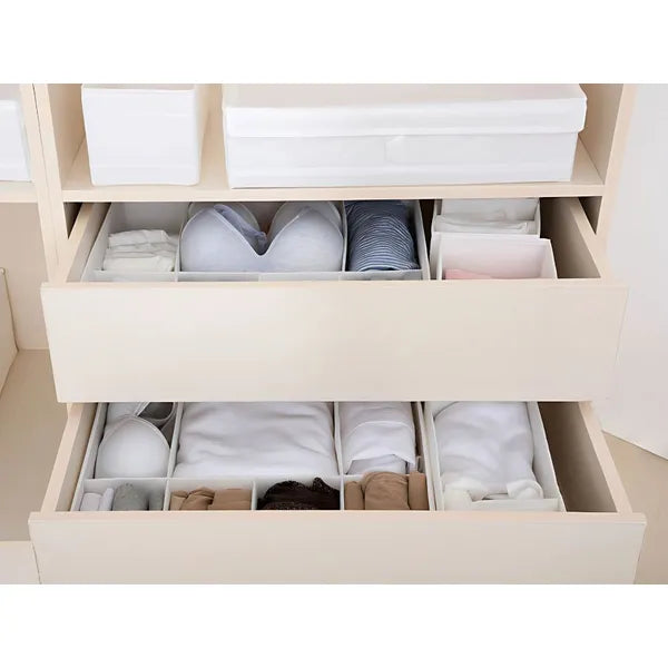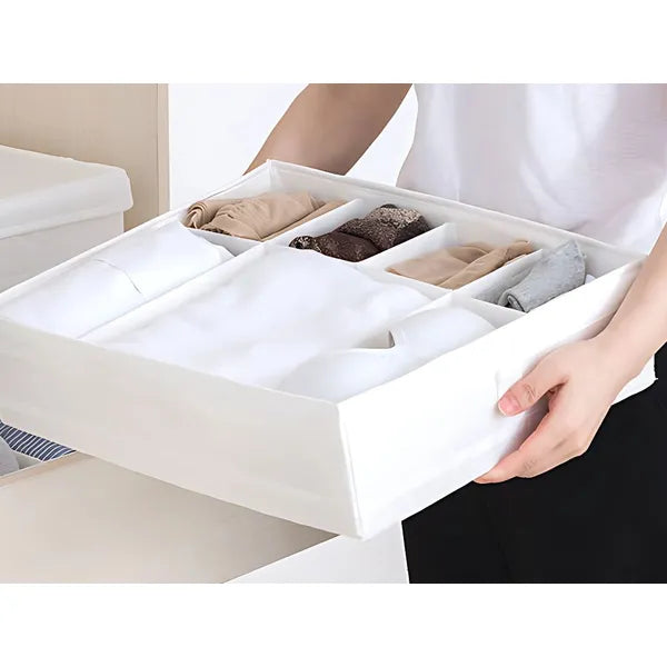 A 44×34×11 cm-es, 7 rekeszes, fehér fiókrendszerező segít, hogy fehérneműid, zoknijaid és kiegészítőid végre átláthatóan sorakozzanak. Minimalista, tiszta fehér színe bármilyen gardróbba illik, poliészter anyagának köszönhetően pedig tartós, mégis könnyen tisztítható.