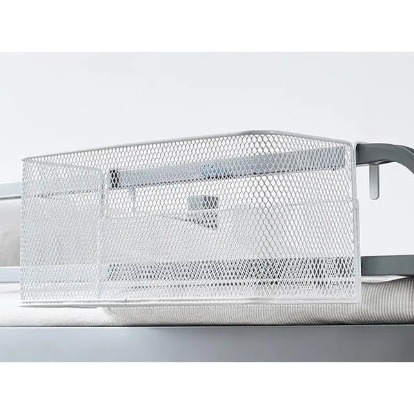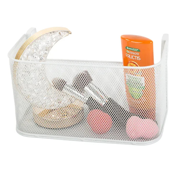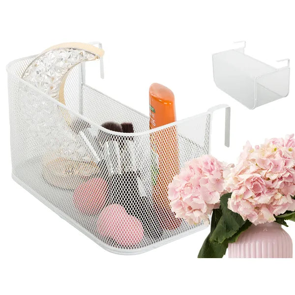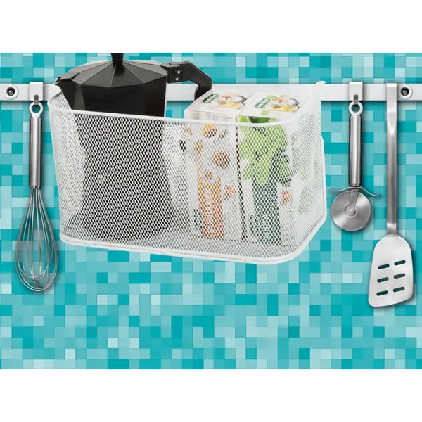 A fehér, porfestett fém hálós kosár egyszerű megoldást kínál a konyhai fűszerek, fürdőszobai kozmetikumok, irodai írószerek vagy hálószobai apróságok rendszerezésére. A két erős, 3,5 cm-ig nyitható akasztóval szerszám nélkül rögzíthető polclapra, ajtóra, ágykeretre vagy fali sínre, így bármikor áthelyezhető.