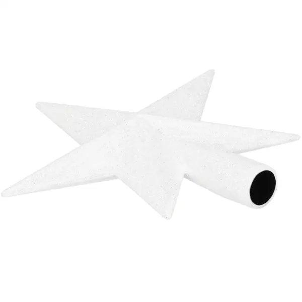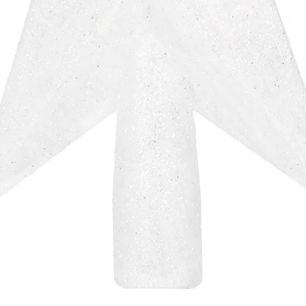 Fehér csillámos műanyag karácsonyfa csúcsdísz, 15 cm