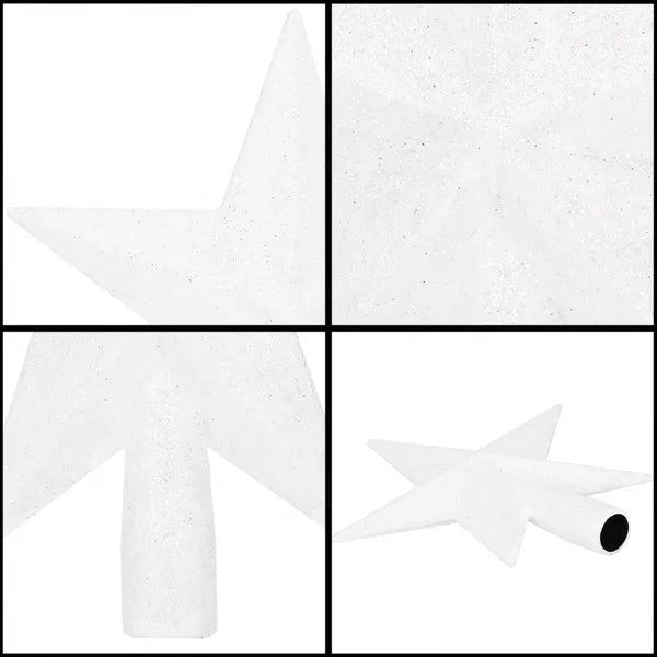 A karácsonyfa csúcsára illeszthető, fehér, csillámos csillag igazi ünnepi ragyogást kölcsönöz otthonának. Könnyű, törésbiztos műanyagból készült, így biztonságosan használható családoknál is.