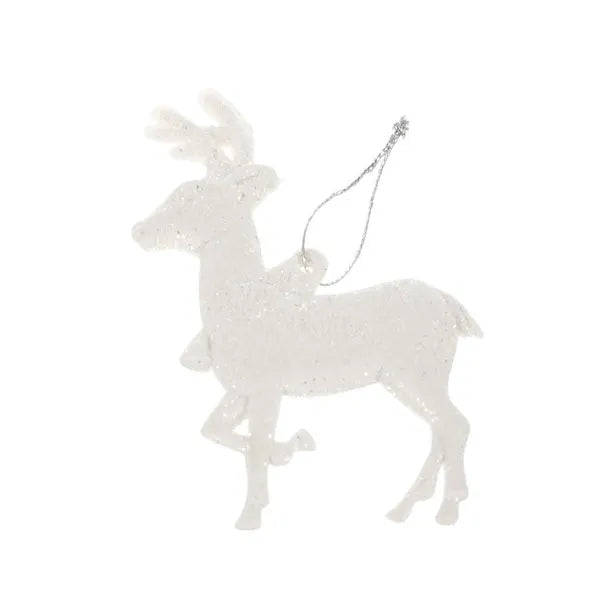Fehér csillámos szarvas alakú karácsonyfadísz szett, 9 db, műanyag