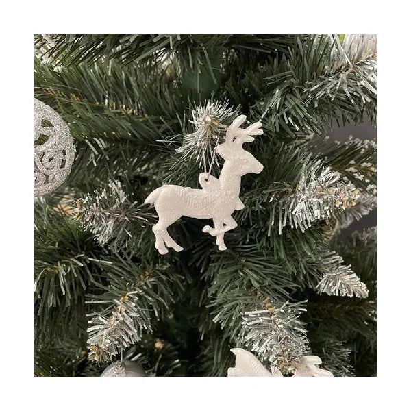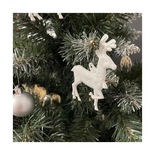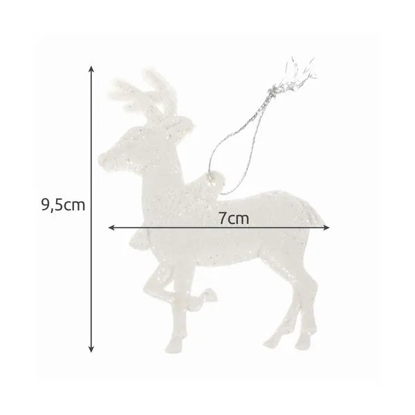 Tedd varázslatossá a karácsonyt ezzel a 9 darabos, fehér csillámos szarvas alakú karácsonyfadísz szettel, amely könnyű, törésbiztos műanyagból készült, így gyermekes családoknál is biztonságosan használható.
