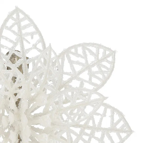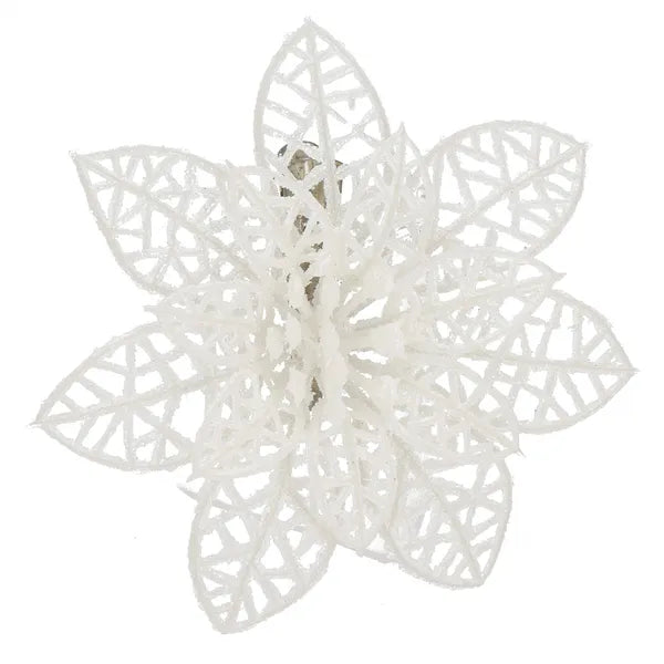 Fehér, csillogó mikulásvirág karácsonyi dekoráció 11×11 cm műanyag