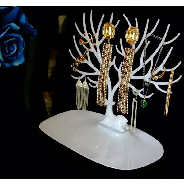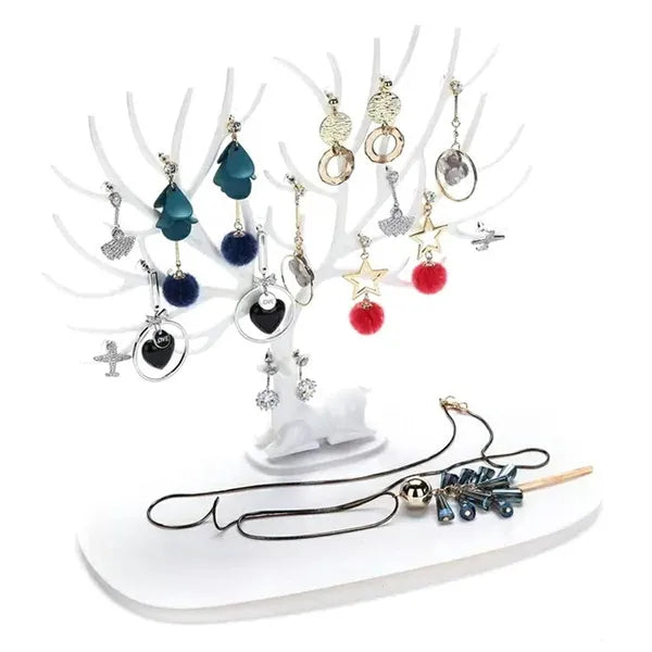 A fehér, faágakat idéző ékszertartó állvány praktikus és dekoratív megoldást kínál a karkötők, órák, nyakláncok és egyéb kiegészítők áttekinthető rendszerezésére. Munkaasztalon, pipereasztalon vagy üzleti kirakatban egyaránt stílusos látványt nyújt, miközben helytakarékosan óvja a díszeit.
