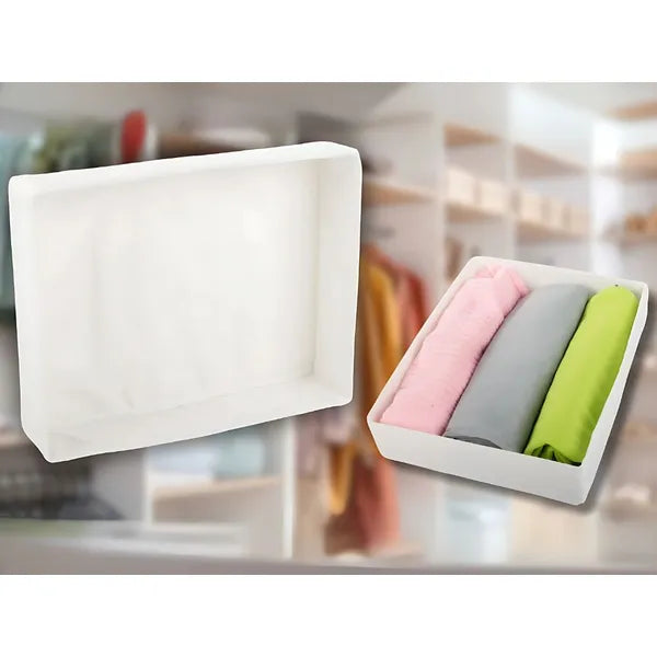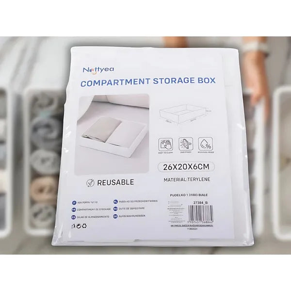 A 26×20×6 cm-es, fehér színű textil rendszerező segítségével könnyedén rendet tehetsz a fiókokban, szekrényekben és polcokon. Ideális fehérnemű, zokni, nyakkendő, ékszer vagy kozmetikum tárolására, miközben esztétikus megjelenést kölcsönöz otthonodnak.