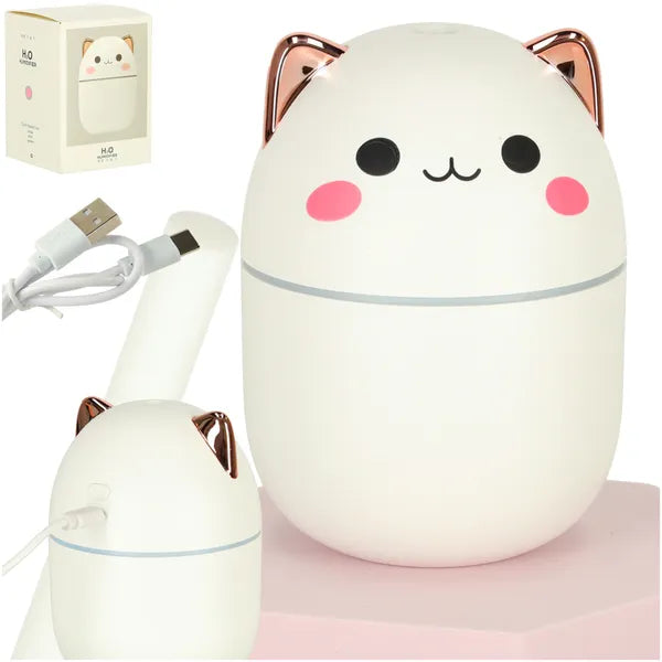 Fehér macska alakú 250 ml-es párologtató diffúzor RGB fénnyel USB-s