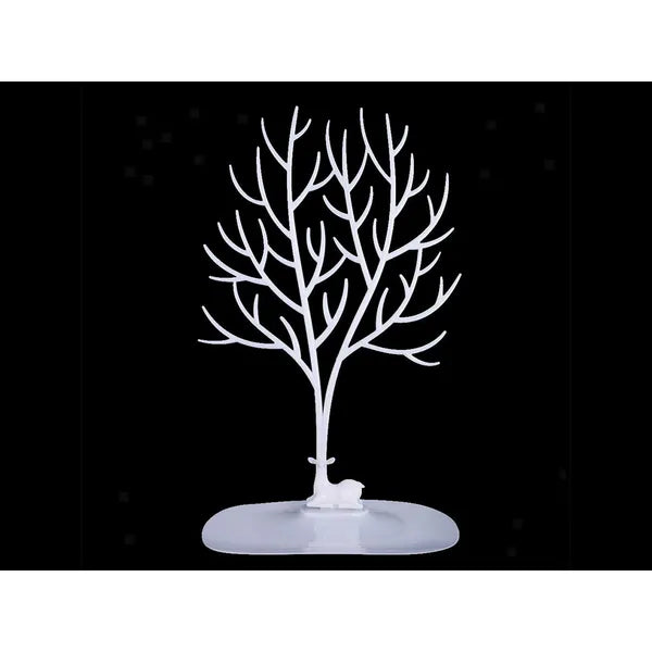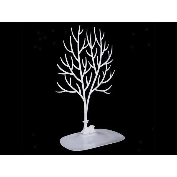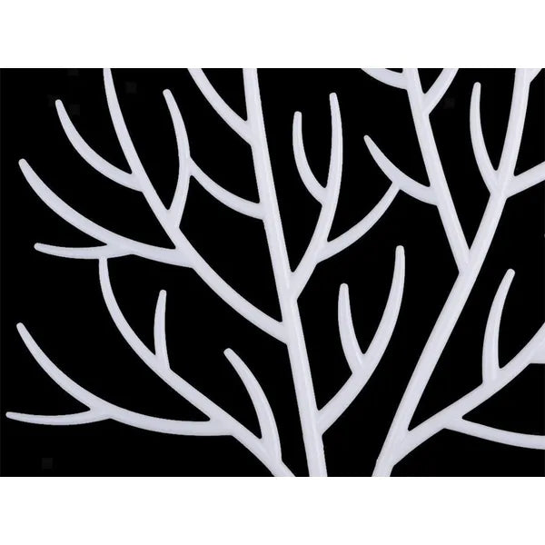 Elegáns, szarvas alakú ékszertartó fa, amely tökéletesen rendszerezi és megjeleníti karkötőidet, gyűrűidet, fülbevalóidat és nyakláncaidat. A 42 cm magas műanyag állvány leveleihez hasonló ágai biztos fogást kínálnak, míg a 25 × 15 cm-es, mély tálca apró kiegészítők, sminkek vagy hajcsatok tárolására is alkalmas.