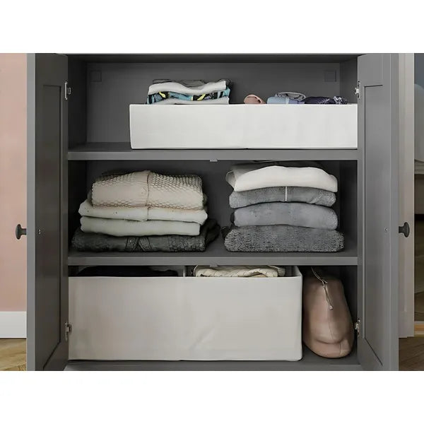 - Univerzális fehér szín, amely bármilyen hálószoba- vagy gardróbstílushoz illeszkedik.