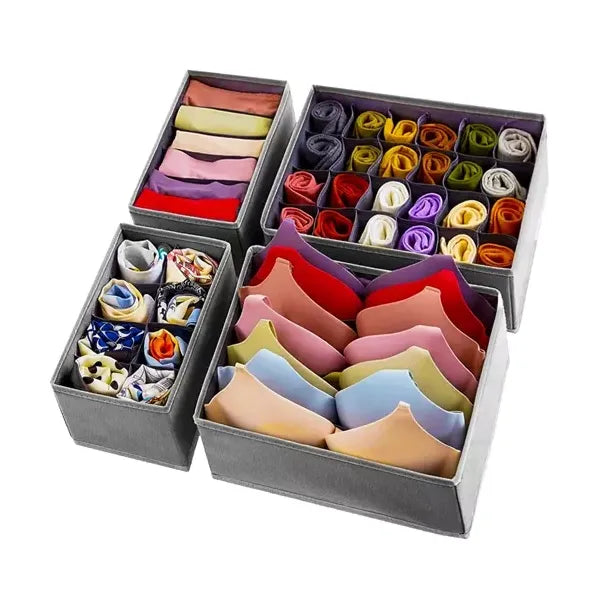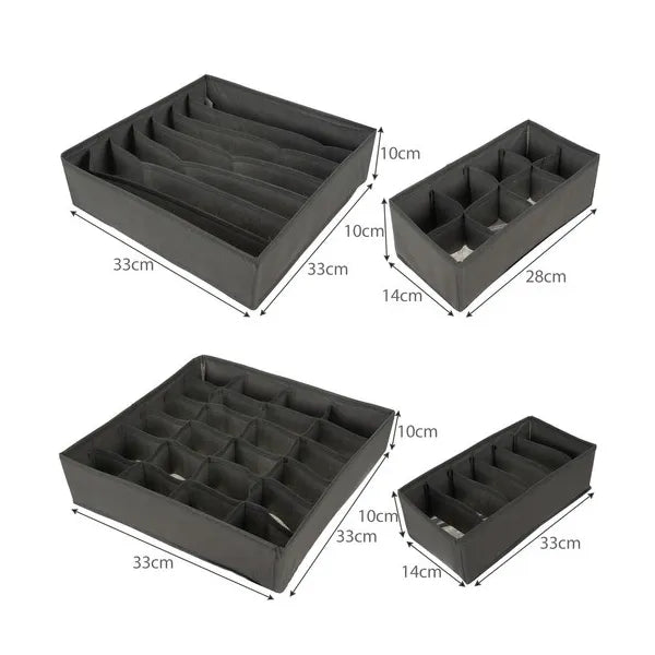 Fehérnemű fiókrendező 4 db-os szett, szürke, összehajtható légáteresztő